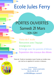Venez nous rencontrer le samedi 21 mars de 10h à 12h lors de nos portes ouvertes.